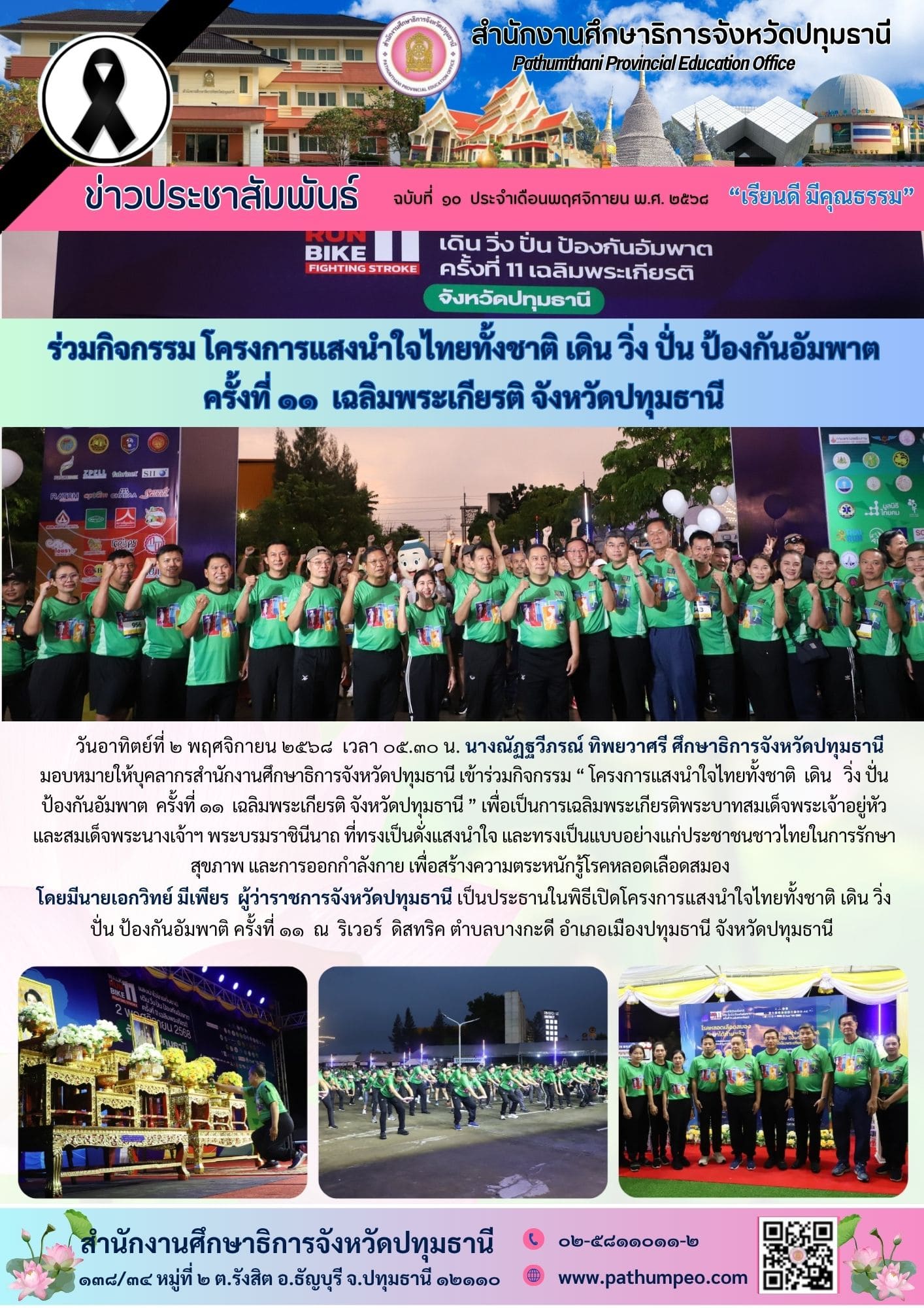 ร่วมกิจกรรม โครงการเเสงนำไทยทั้งชาติ เดิน วิ่ง ปั่น ป้องกันอัมพาต ครั้งที่ 11 เฉลิมพระเกียรติ จังหวัดปทุมธานี