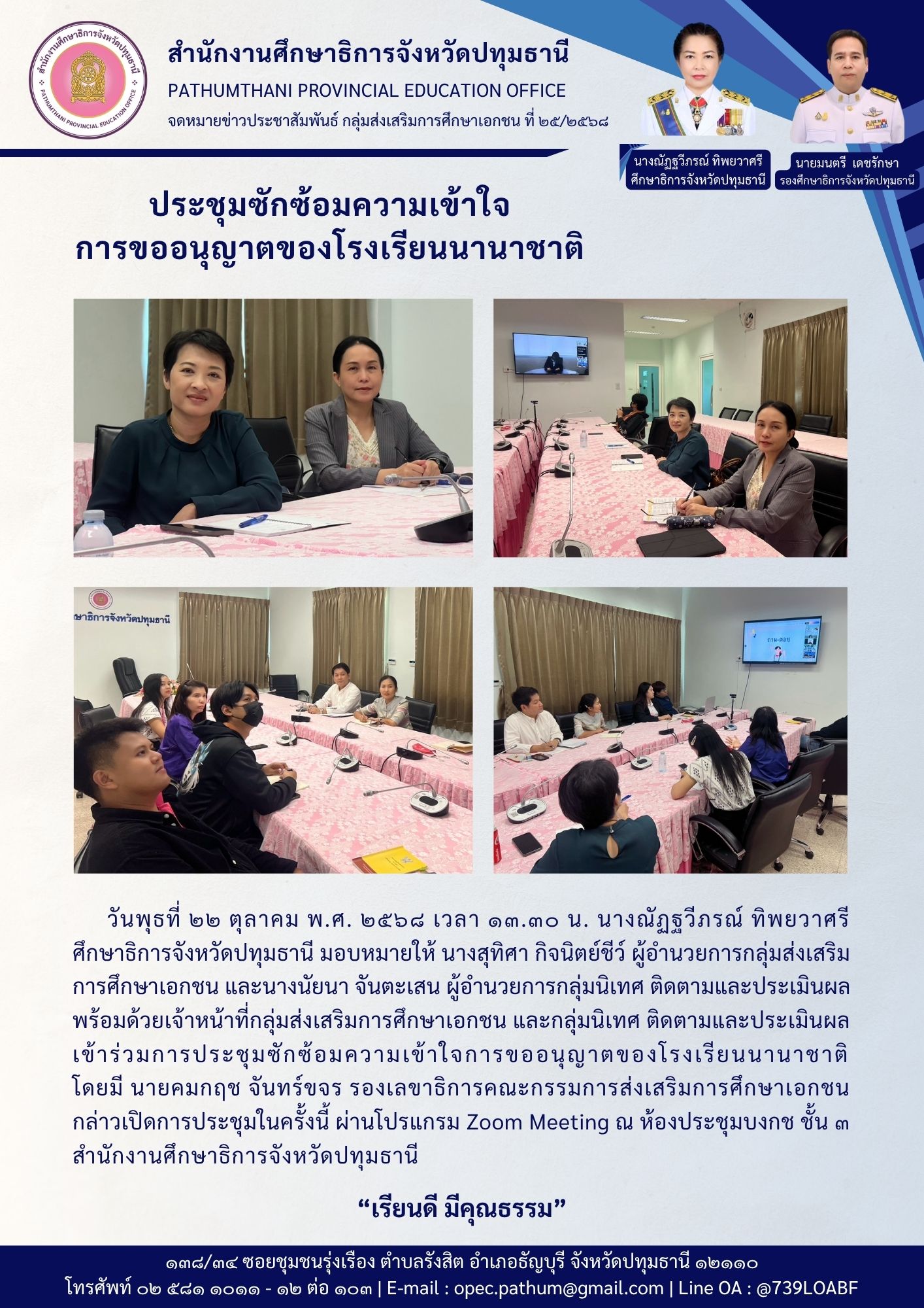 ประชุมซักซ้อมความเข้าใจการขออนุญาตของโรงเรียนนานาชาติ