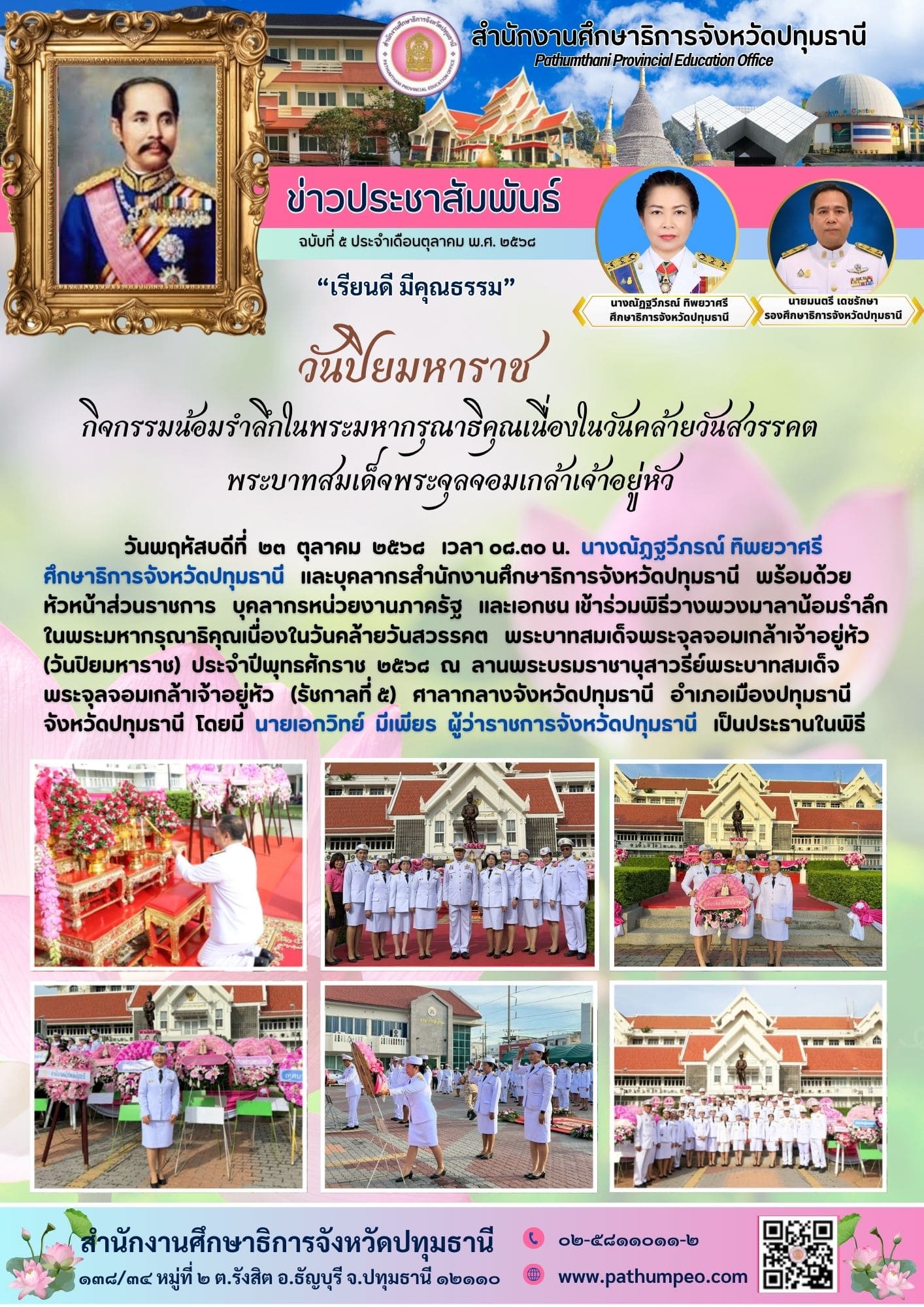 กิจกรรมน้อมรำลึกในพระมหากรุณาธิคุณเนื่องในวันคล้ายวันสวรรคต พระบาทสมเด็จพระจุลจอมเกล้าเจ้าอยู่หัว วันปิยมหาราช 23 ตุลาคม 2568