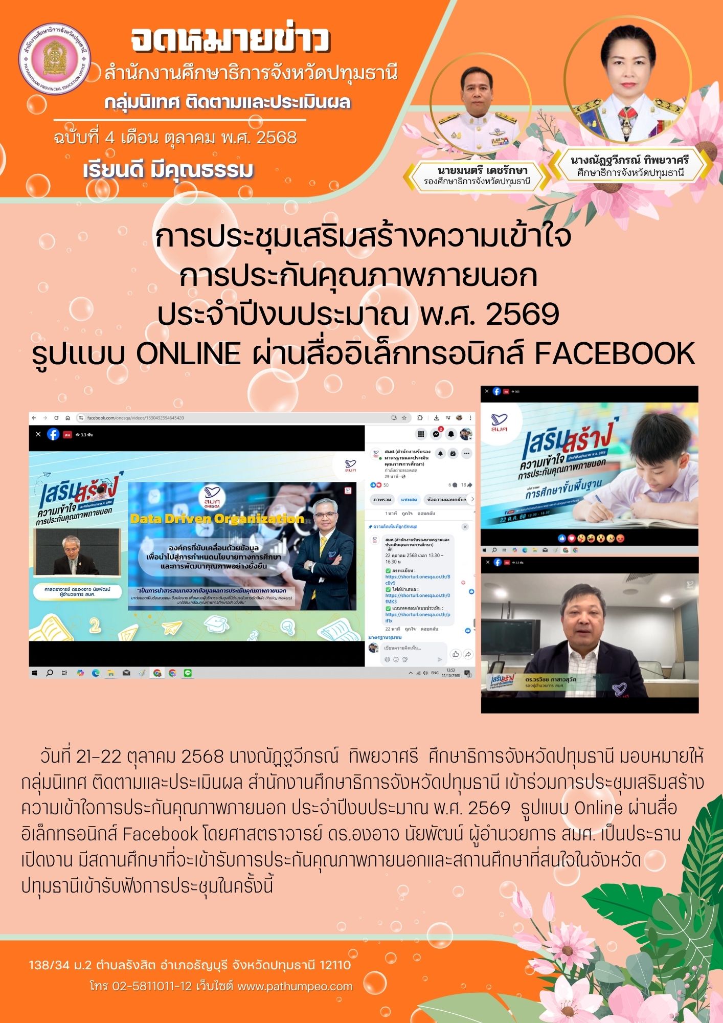 ประชุมเสริมสร้างความเข้าใจการประกันคุณภาพคุณภาพภายนอก ประจำปีงบประมาณ พ.ศ. 2569 รูปแบบ Online ผ่านสื่ออิเล็กทรอนิกส์ Facebook
