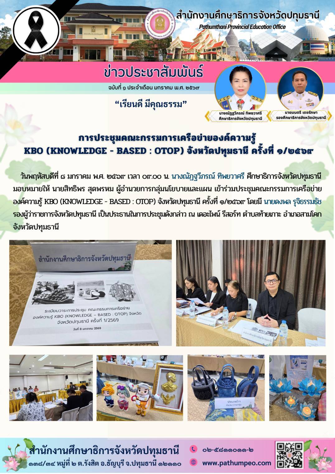 การประชุมคณะกรรมการเครือข่ายองค์ความรู้ KBO (KNOWLEDGE - BASED : OTOP) จังหวัดปทุมธานี ครั้งที่ ๑/๒๕๖๙