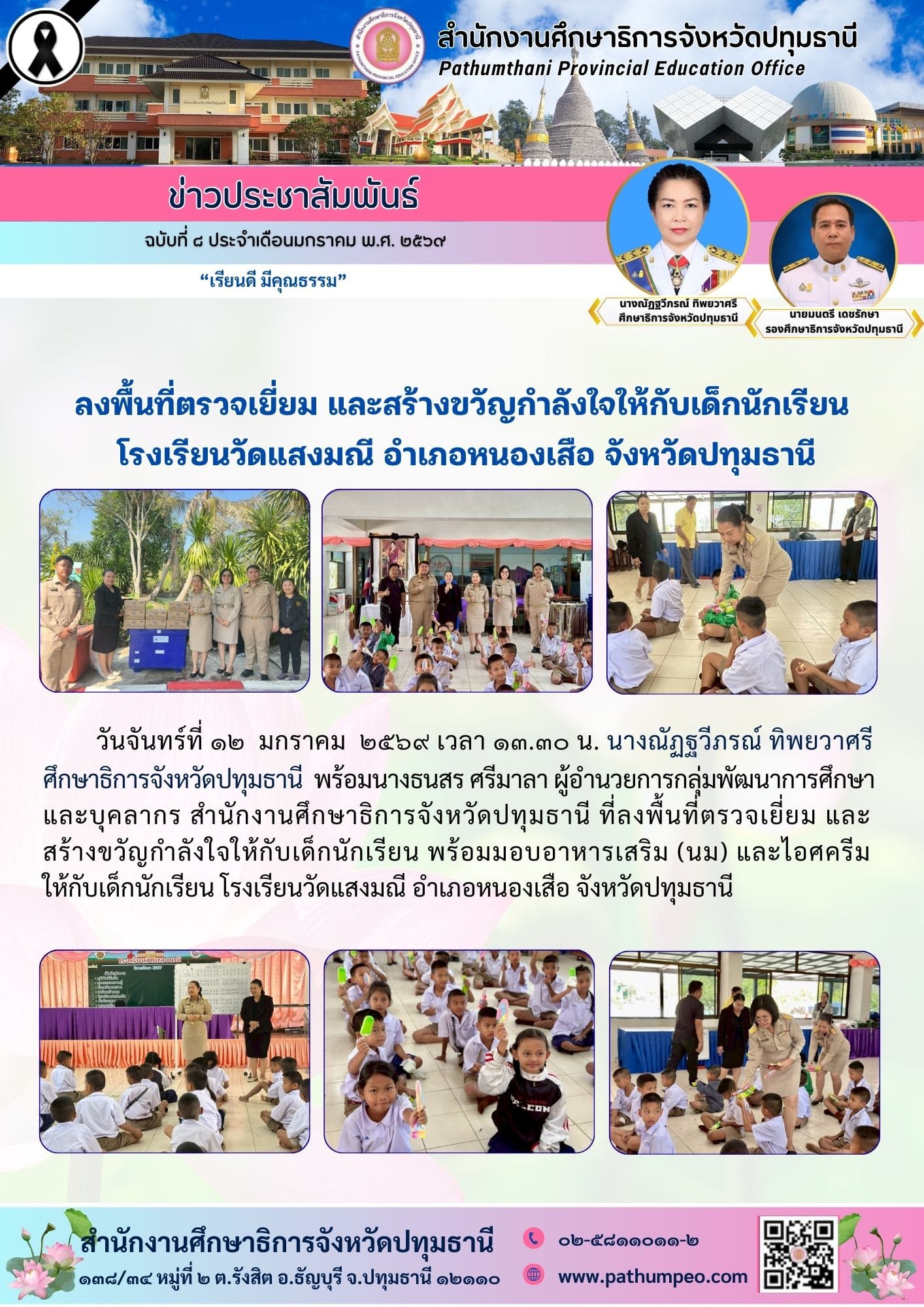 ลงพื้นที่ตรวจเยี่ยม และสร้างขวัญกำลังใจให้กับเด็กนักเรียน โรงเรียนวัดแสงมณี อำเภอหนองเสือ จังหวัดปทุมธานี