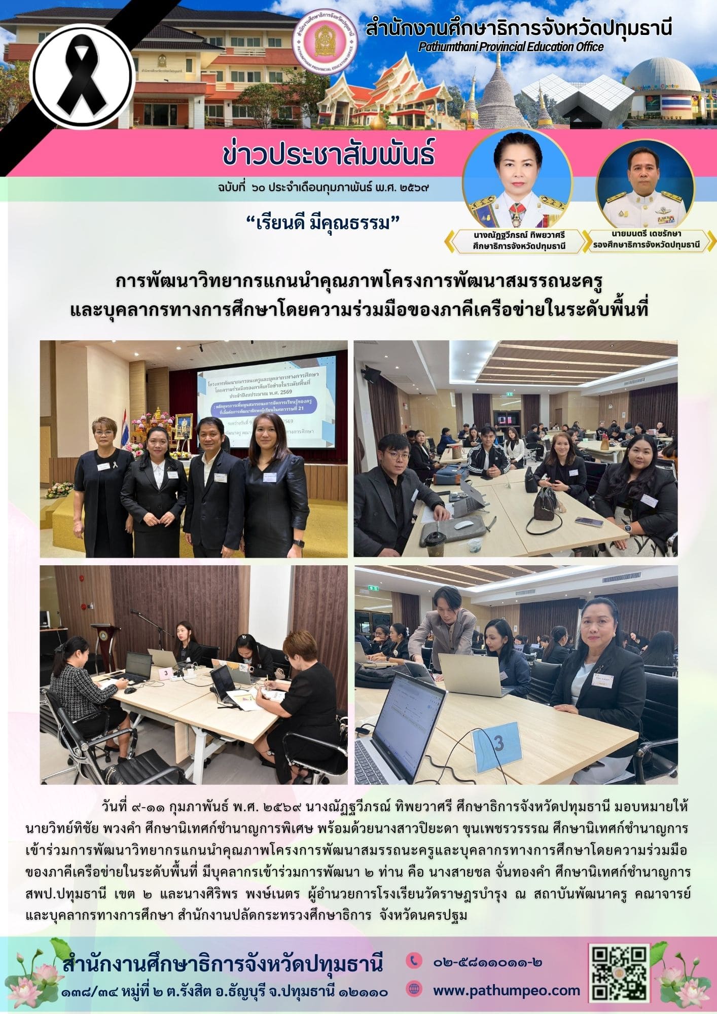 การพัฒนาวิทยากรแกนนำคุณภาพโครงการพัฒนาสมรรถนะครู และบุคลากรทางการศึกษา โดยความร่วมมือของภาคีเครือข่ายในระดับพื้นที่