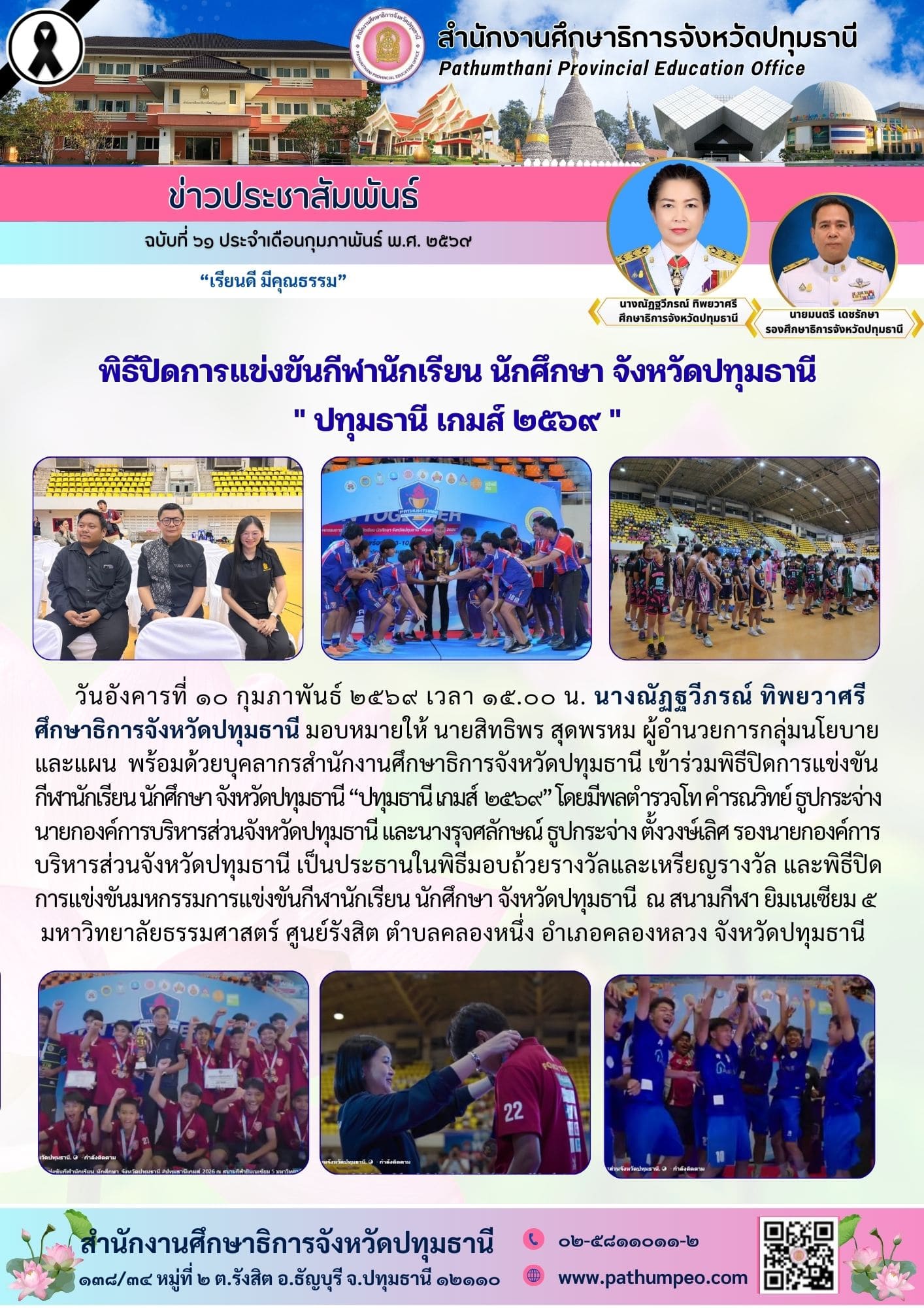พิธีปิดการแข่งขันกีฬานักเรียน นักศึกษา จังหวัดปทุมธานี