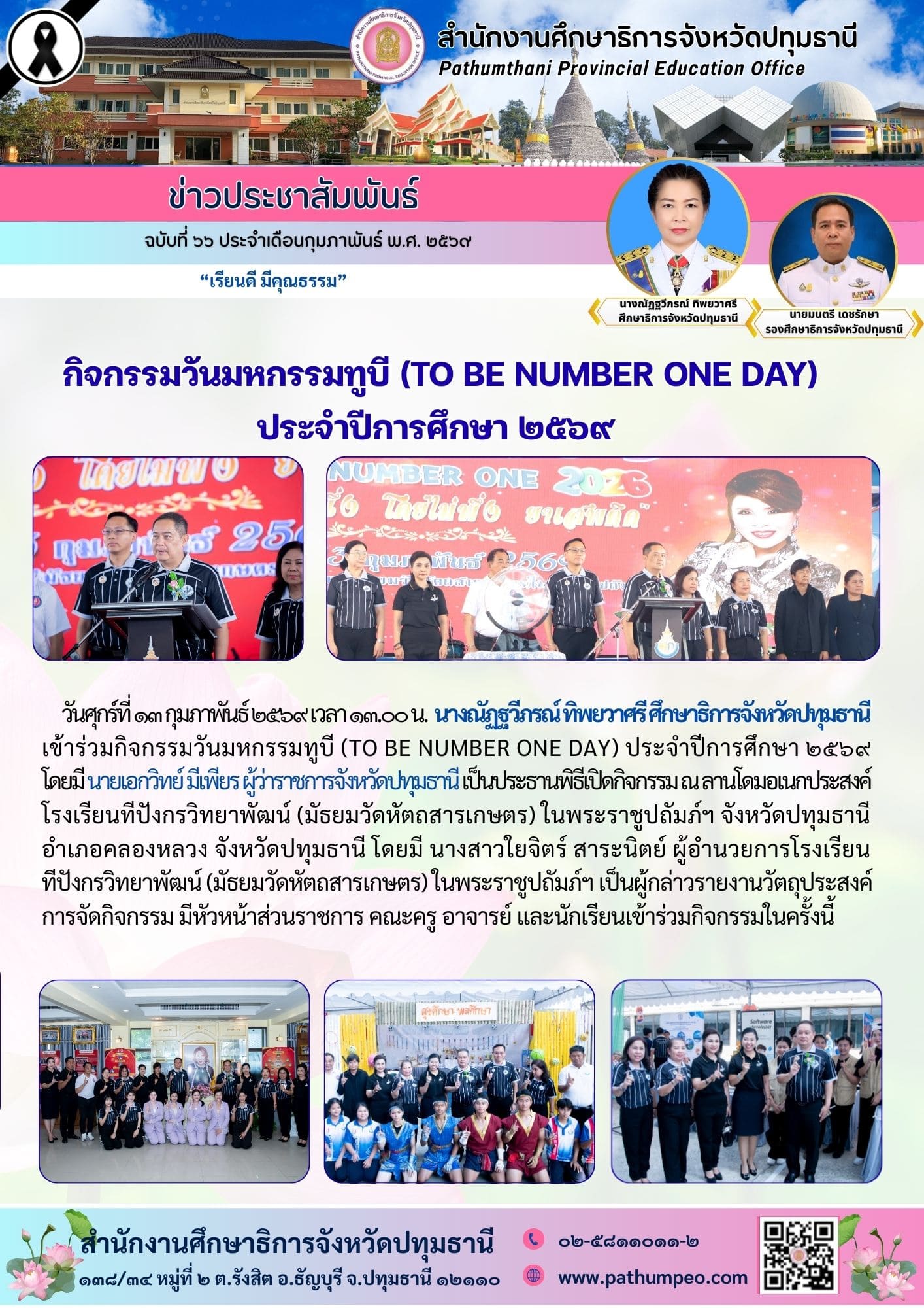 กิจกรรมวันมหกรรมทูบี (TO BE NUMBER ONE DAY) ประจำปีการศึกษา ๒๕๖๙
