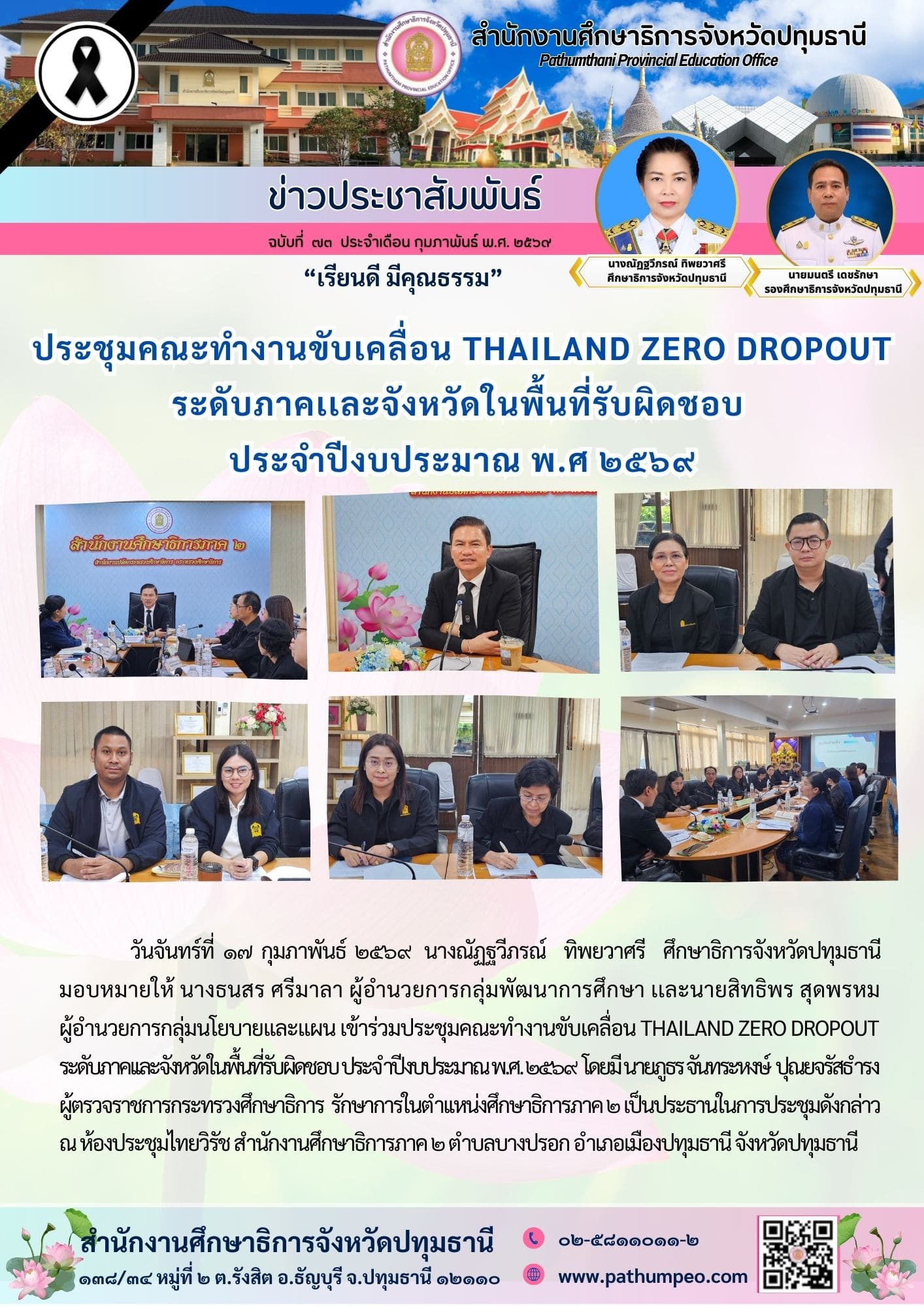 ประชุมคณะทำงานขับเคลื่อน THAILAND ZERO DROPOUT ระดับภาคเเละจังหวัดในพื้นที่รับผิดชอบ ประจำปีงบประมาณ พ.ศ 2569