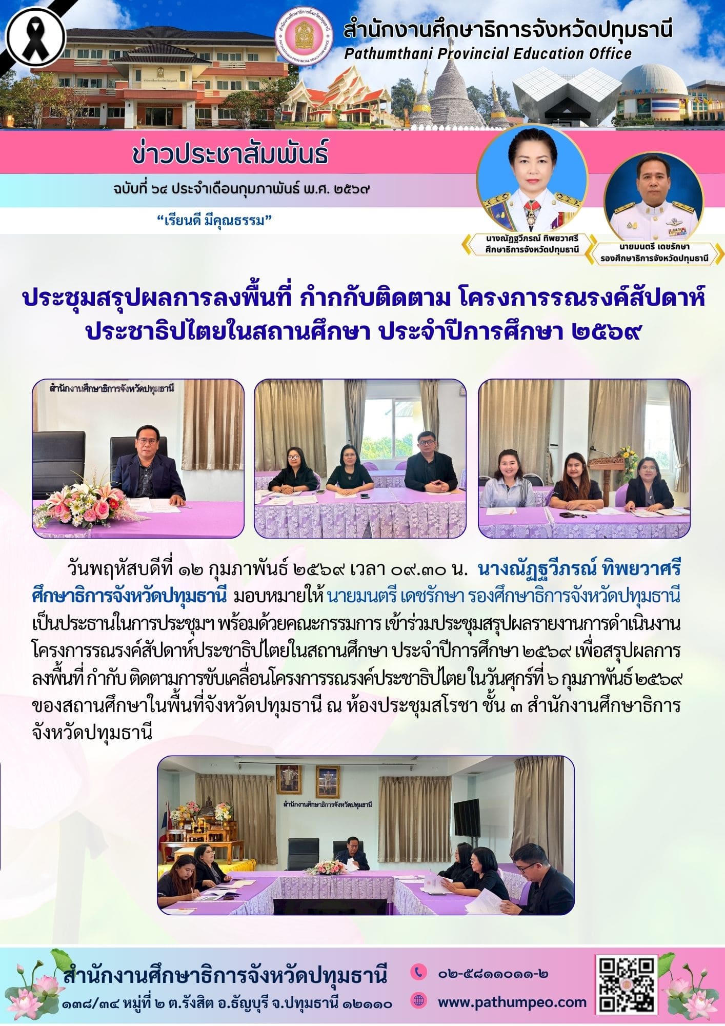 ประชุมสรุปผลการลงพื้นที่ กำกับติดตาม โครงการรณรงค์สัปดาห์ประชาธิปไตยในสถานศึกษา ประจำปีการศึกษา ๒๕๖๙