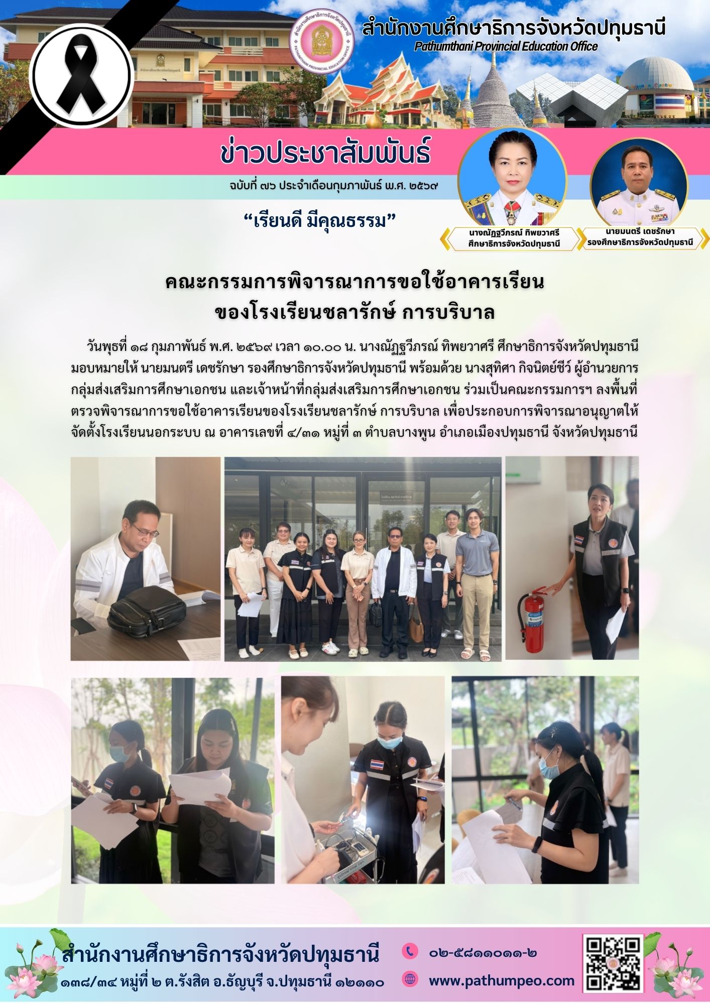 คณะกรรมการพิจารณาการขอใช้อาคารเรียนของโรงเรียนชลารักษ์ การบริบาล