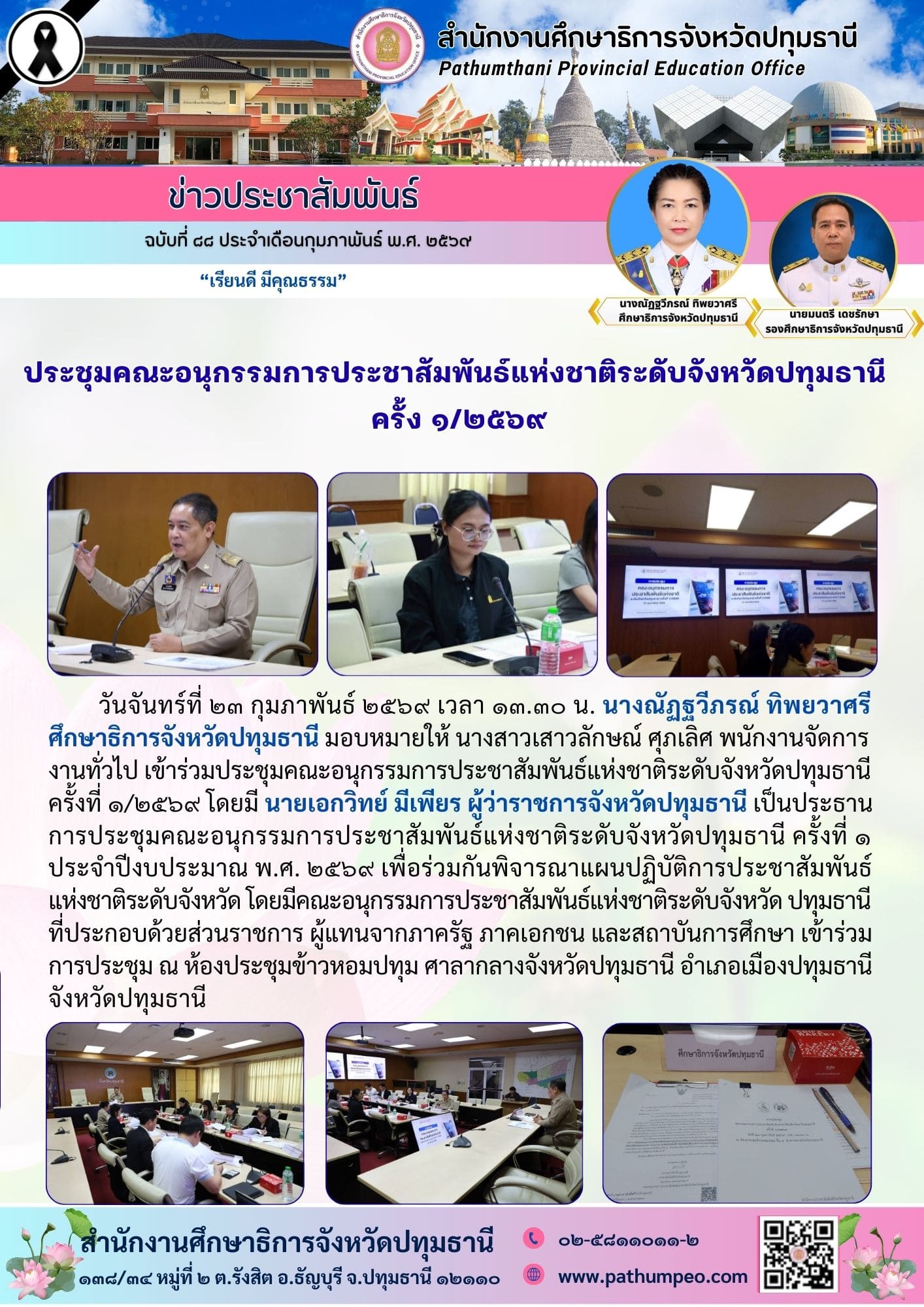 ประชุมคณะอนุกรรมการประชาสัมพันธ์แห่งชาติระดับจังหวัดปทุมธานี ครั้ง ๑/๒๕๖๙