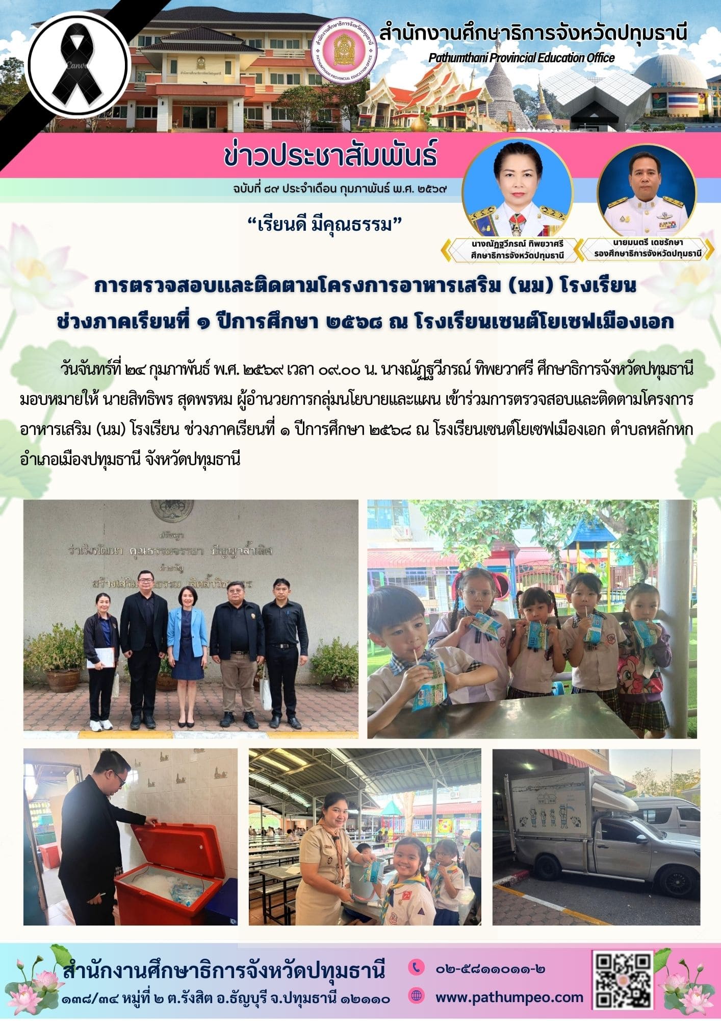 การตรวจสอบเเละติดตามโครงการอาหารเสริม (นม) โรงเรียนช่วงภาคเรียนที่ ๑ ปีการศึกษา ๒๕๖๘ ณ โรงเรียนเซนต์โยเซฟเมืองเอก
