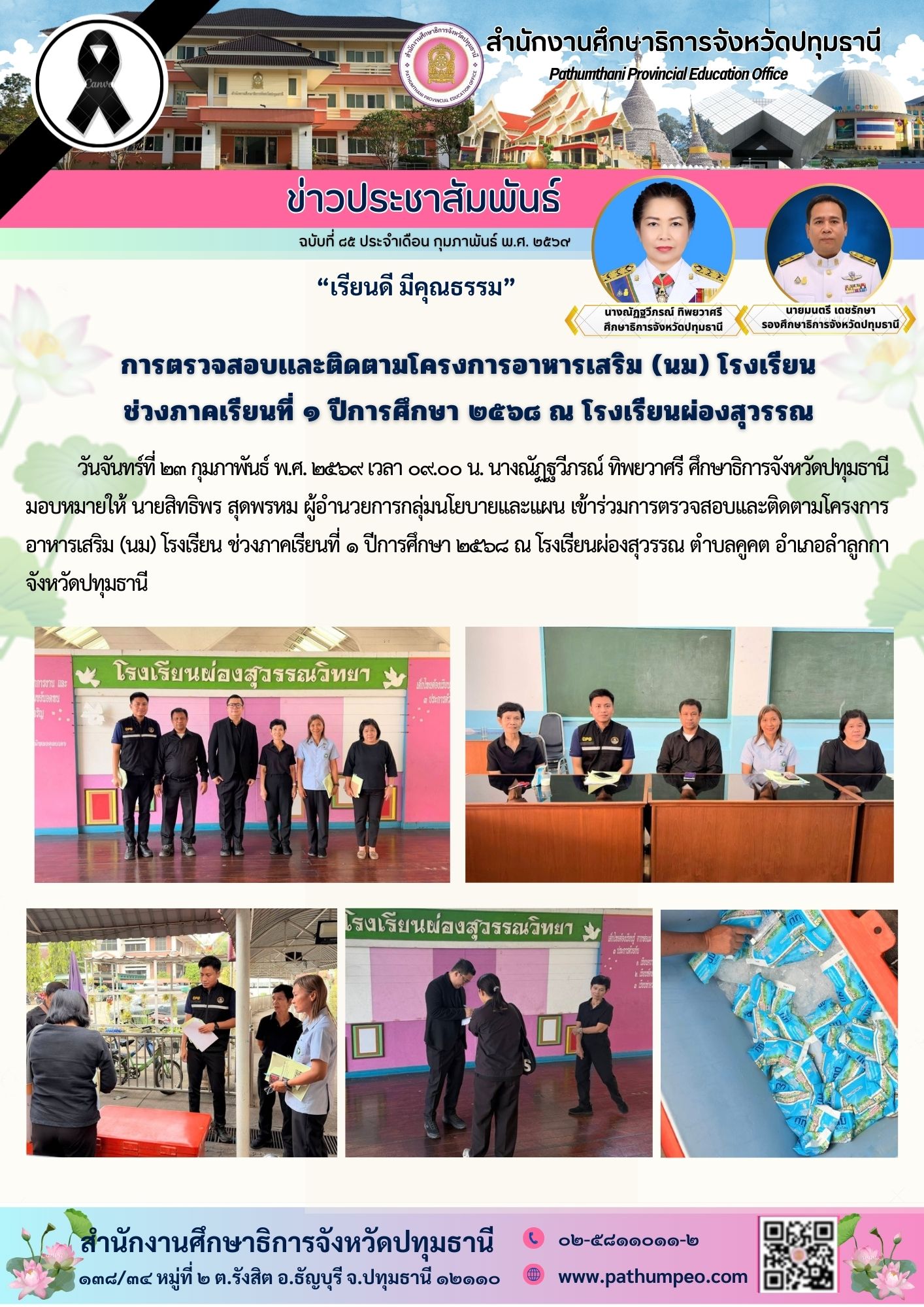 การตรวจสอบเเละติดตามโครงการอาหารเสริม (นม) โรงเรียนช่วงภาคเรียนที่ ๑ ปีการศึกษา ๒๕๖๘ ณ โรงเรียนผ่องสุวรรณ