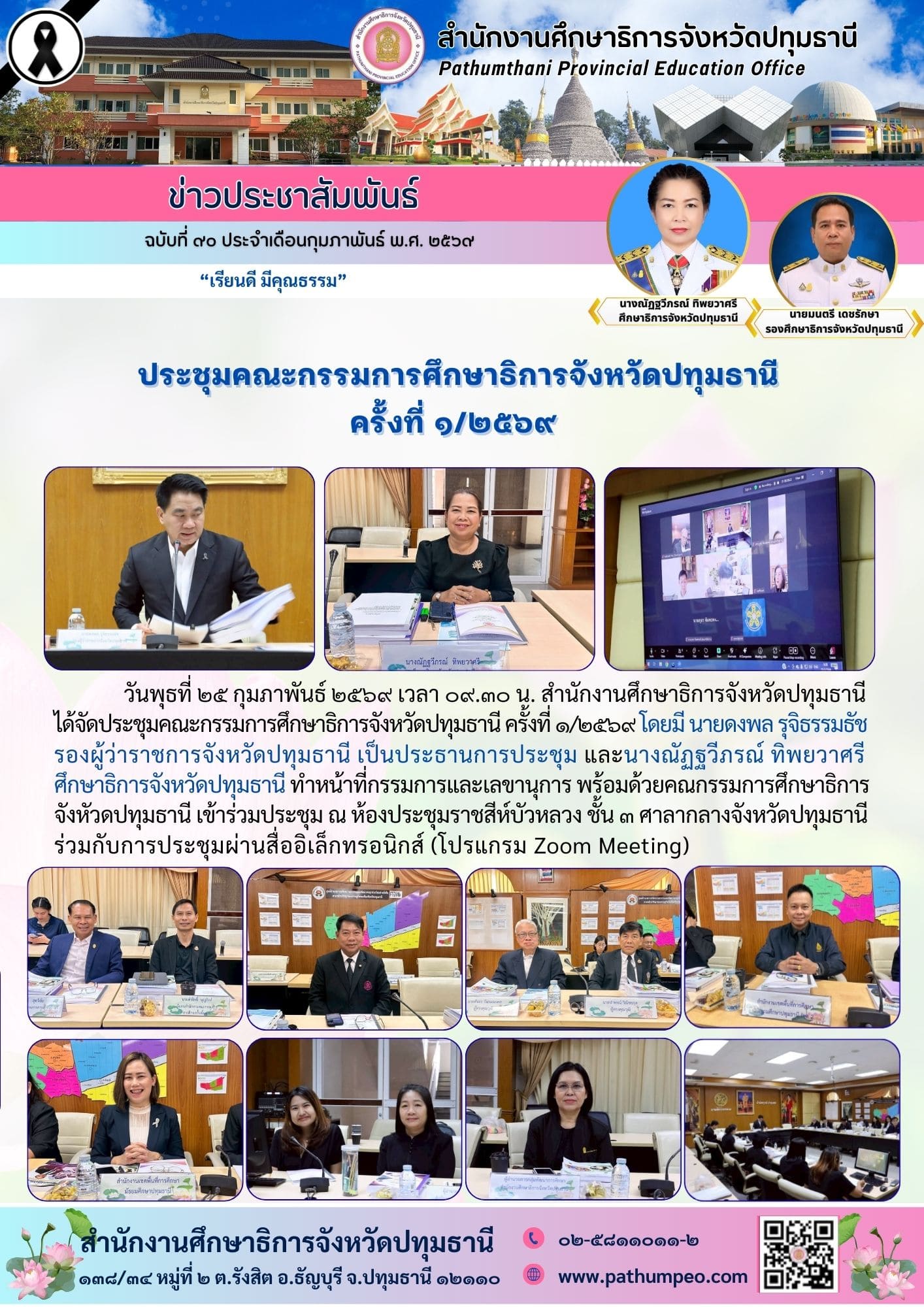 ประชุมคณะกรรมการศึกษาธิการจังหวัดปทุมธานี ครั้งที่ ๑/๒๕๖๙