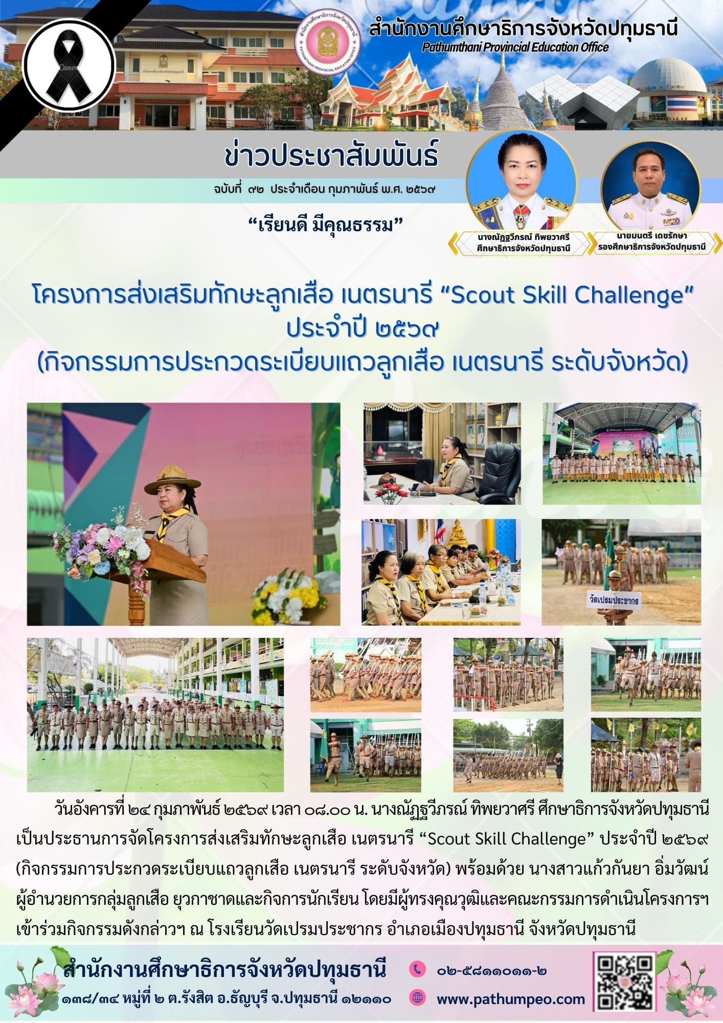 โครงการส่งเสริมทักษะลูกเสือ เนตรนารี “Scout Skill Challenge” ประจำปี ๒๕๖๙ (กิจกรรมการประกวดระเบียบแถวลูกเสือ เนตรนารี ระดับจังหวัด)