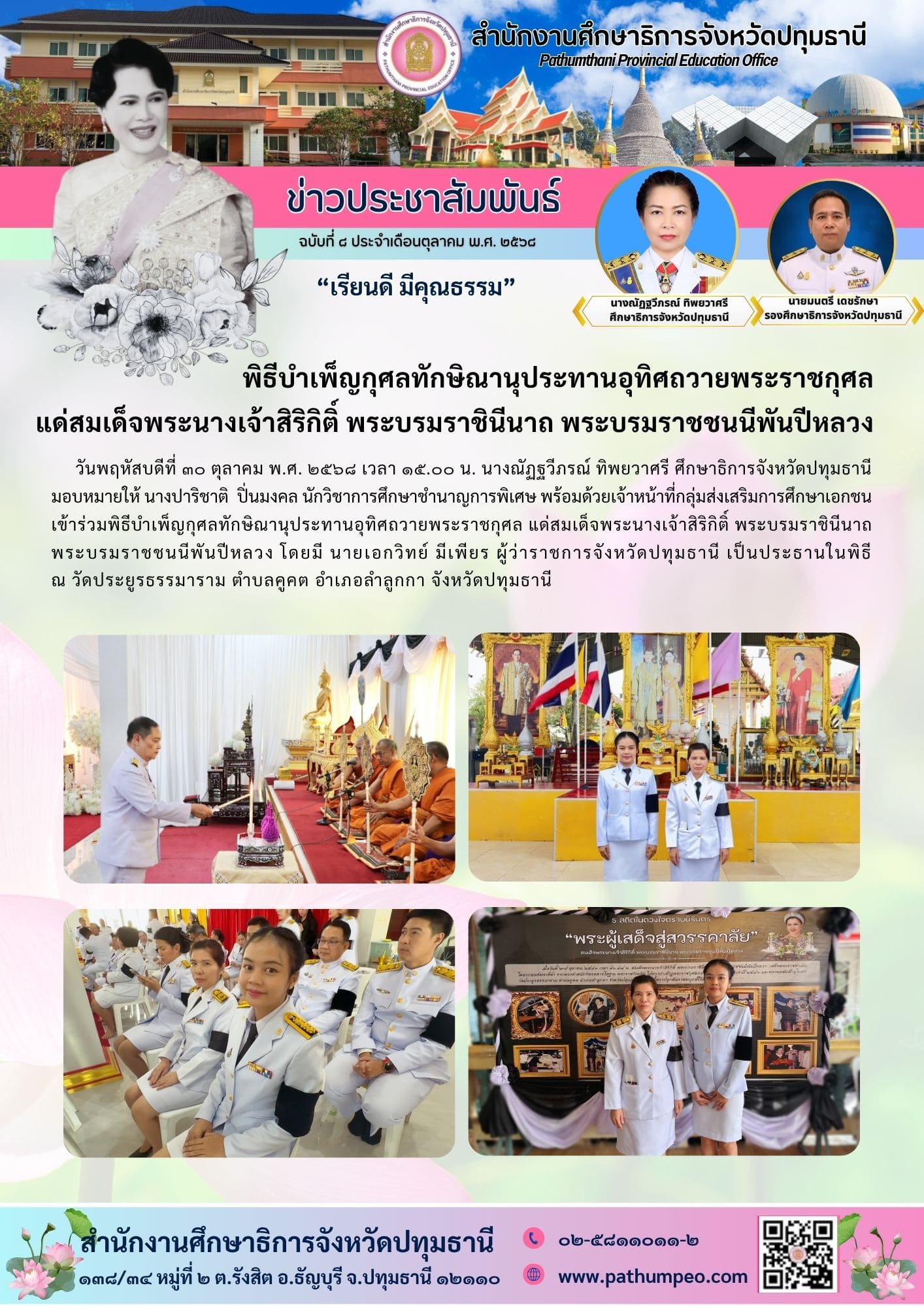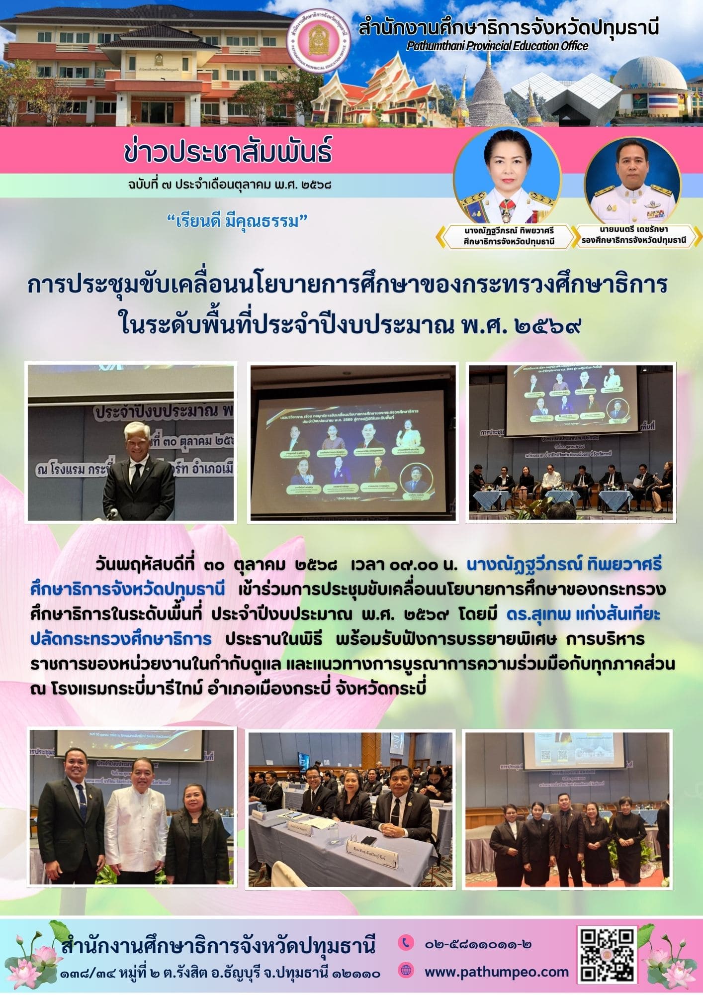 ประชุมข้าราชการ พนักงานราชการ และบุคลากรทางการศึกษา สำนักงานศึกษาธิการจังหวัดปทุมธานี ครั้งที่ ๓ ประจำเดือนตุลาคม ๒๕๖๘