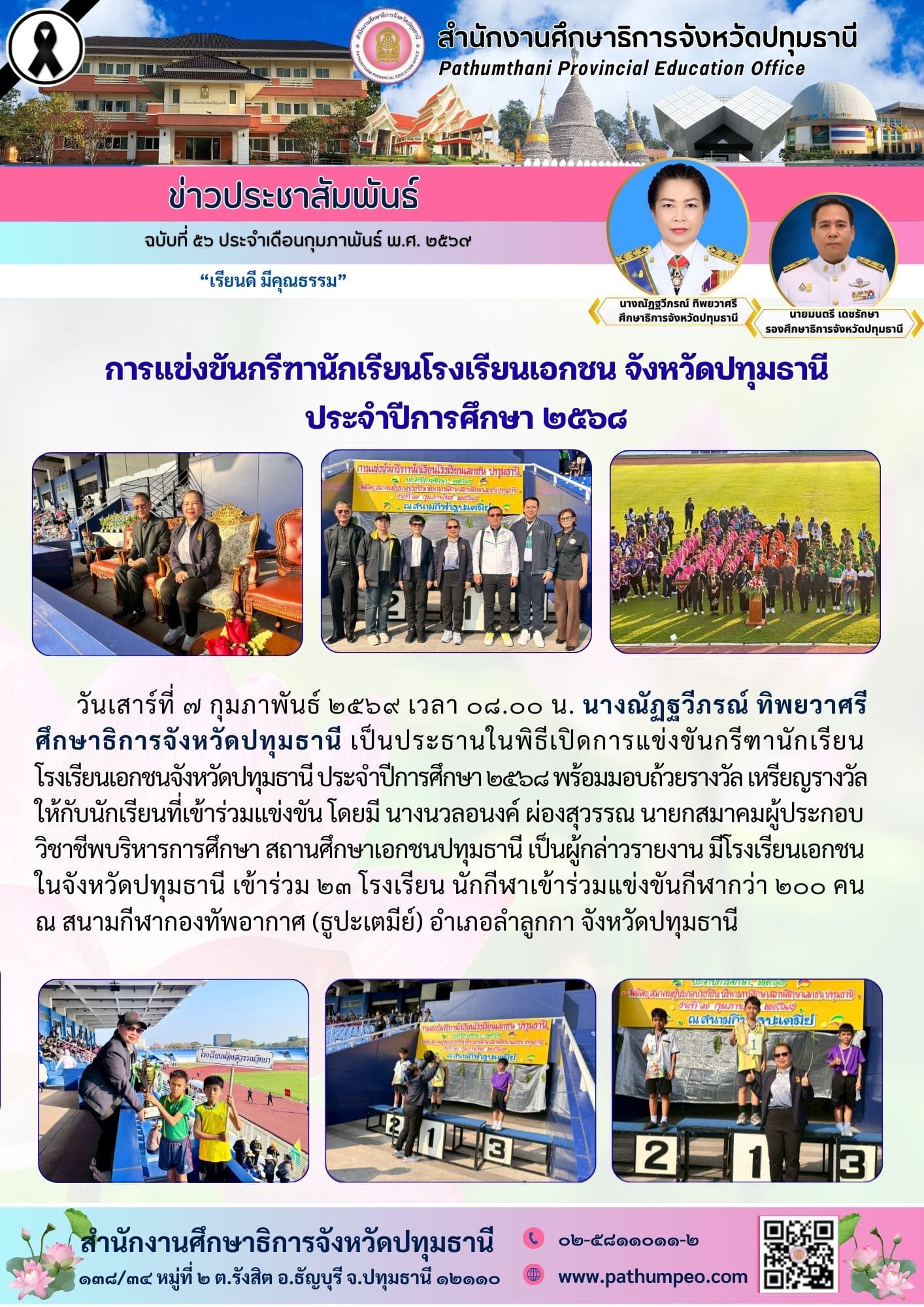 การแข่งขันกรีฑานักเรียนโรงเรียนเอกชน จังหวัดปทุมธานี ประจำปีการศึกษา ๒๕๖๘