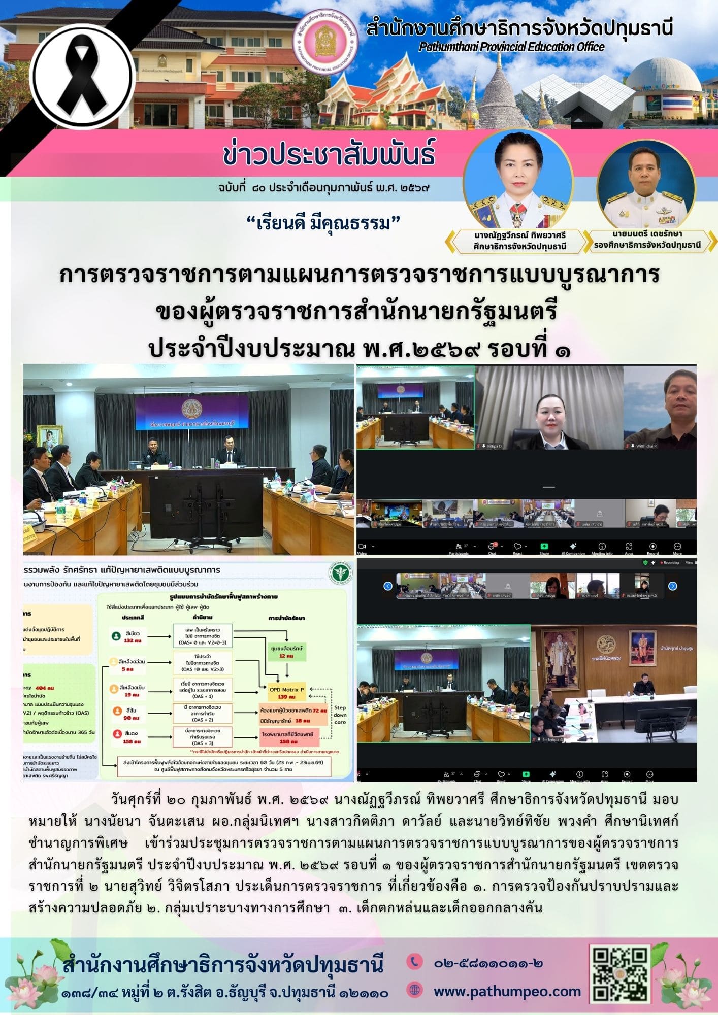 การตรวจราชการตามแผนการตรวจราชการแบบบูรณาการ ของผู้ตรวจราชการสำนักนายกรัฐมนตรี ประจำปีงบประมาณ พ.ศ. ๒๕๖๙ รอบที่ ๑