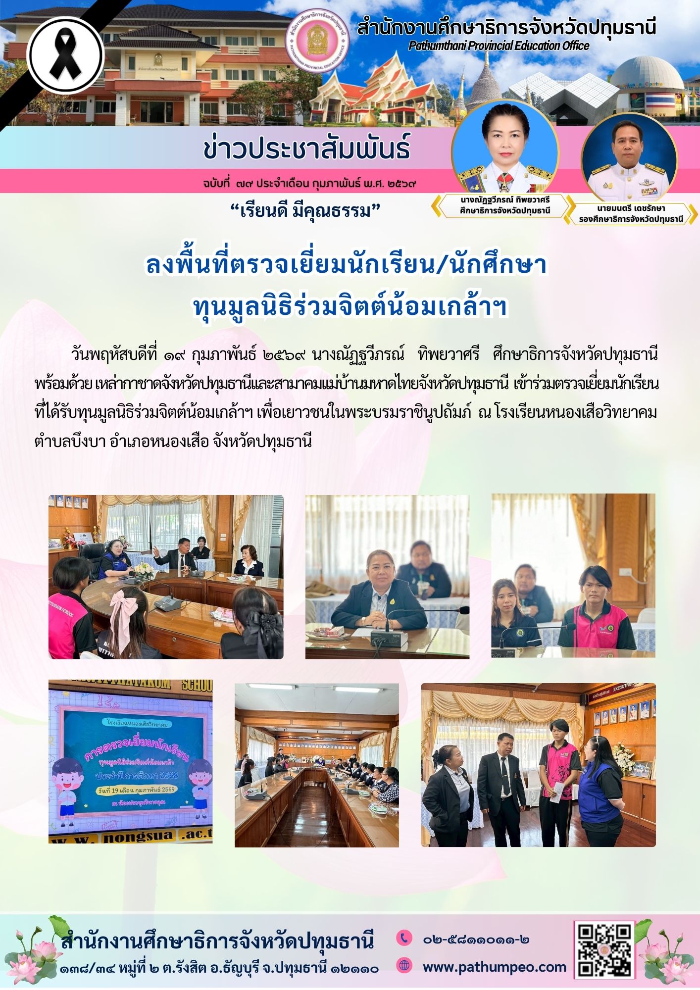 ลงพื้นที่ตรวจเยี่ยมนักเรียน/นักศึกษา ทุนมูลนิธิร่วมจิตต์น้อมเกล้าฯ ณ โรงเรียนหนองเสือวิทยาคม