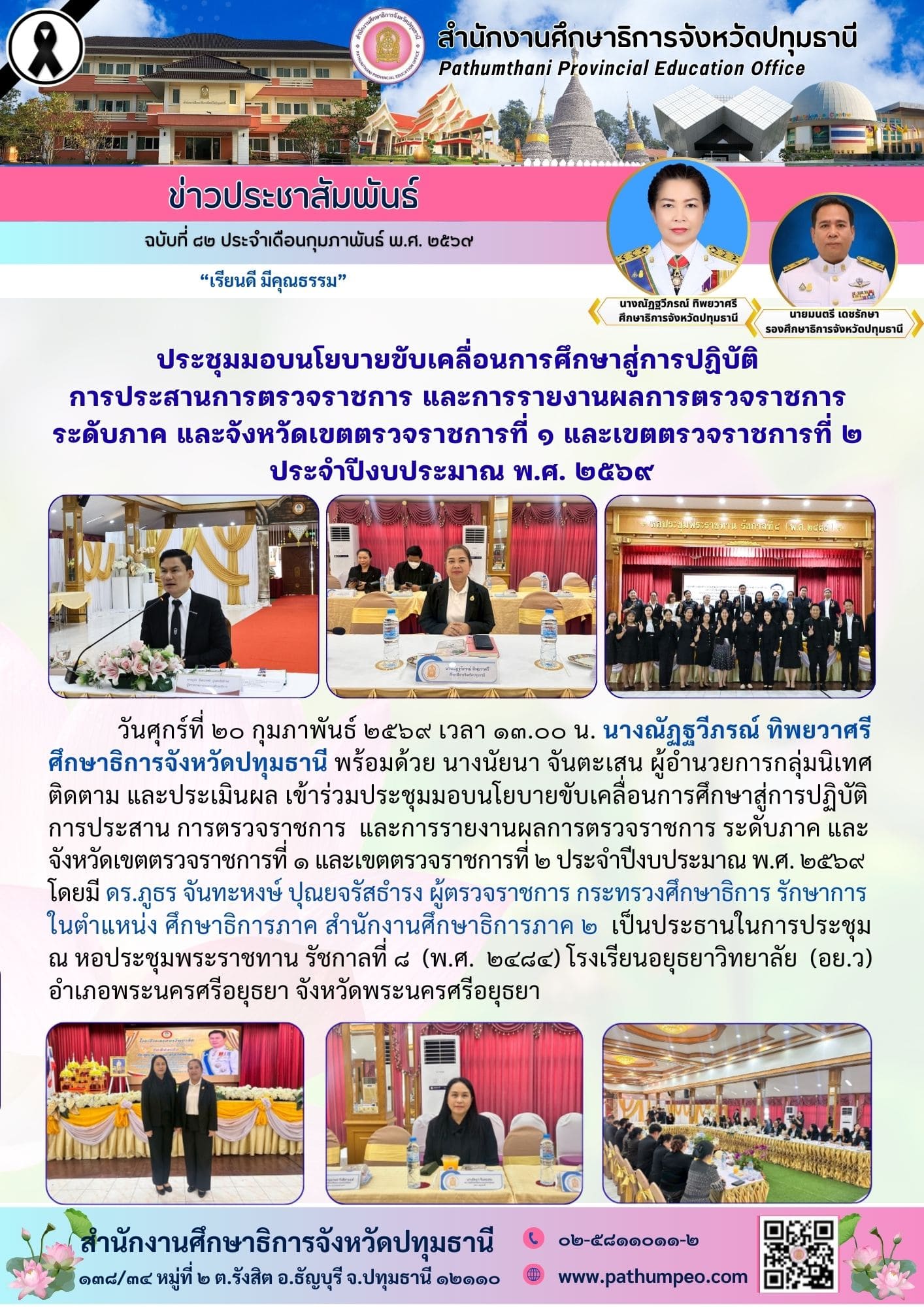 ประชุมมอบนโยบายขับเคลื่อนการศึกษาสู่การปฏิบัติ การประสานการตรวจราชการ และการรายงานผลการตรวจราชการ ระดับภาค และจังหวัดเขตตรวจราชการที่ ๑ และเขตตรวจราชการที่ ๒ ประจำปีงบประมาณ พ.ศ. ๒๕๖๙