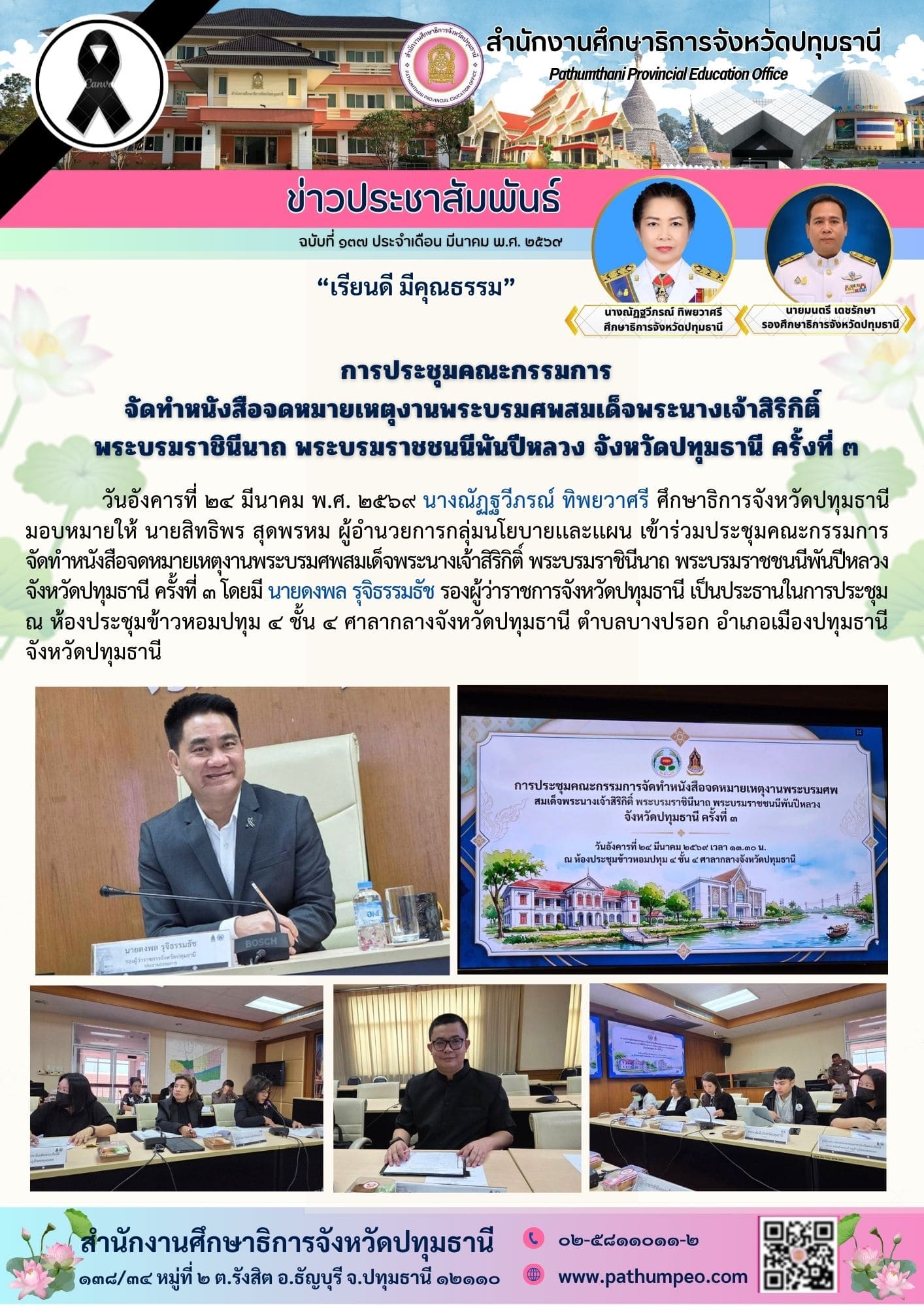 การประชุมคณะกรรมการ จัดทำหนังสือจดหมายเหตุงานพระบรมศพสมเด็จพระนางเจ้าสิริกิติ์ พระบรมราชินีนาถ พระบรมราชชนนีพันปีหลวง จังหวัดปทุมธานี ครั้งที่ ๓