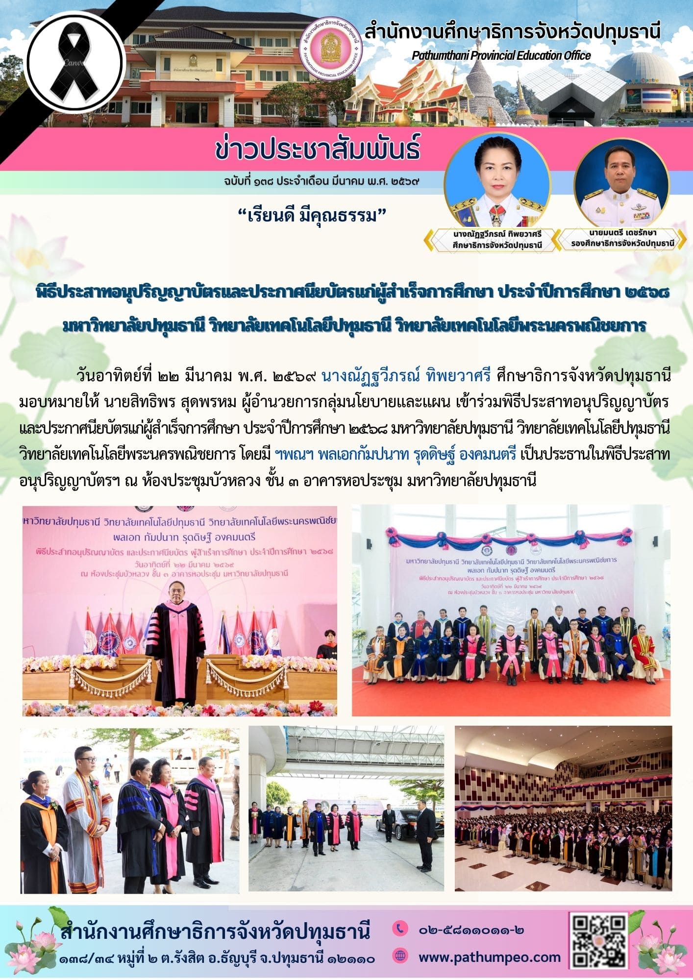 พิธีประสาทอนุปริญญาบัตรเเละประกาศนียบัตรเเก่ผู้สำเร็จการศึกษา ประจำปีการศึกษา ๒๕๖๘ มหาวิทยาลัยปทุมธานี วิทยาลัยเทคโนโลยีปทุมธานี วิทยาลัยเทคโนโลยีพระนครพณิชยการ