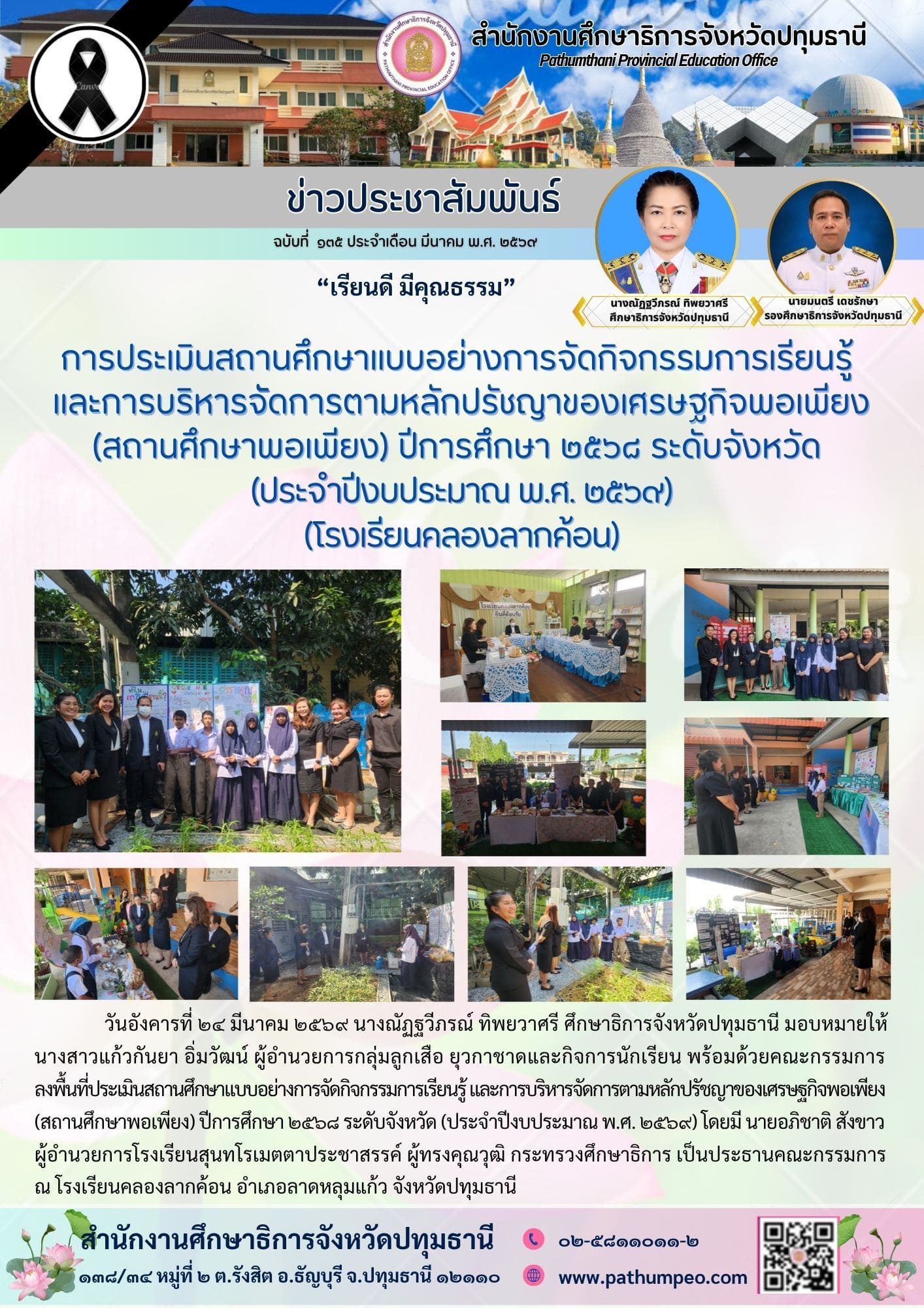 การประเมินสถานศึกษาแบบอย่างการจัดกิจกรรมการเรียนรู้ และการบริหารจััดการตามหลักปรัชญาของเศรษฐกิจพอเพียง (สถานศึกษาพอเพียง) ปีการศึกษา ๒๕๖๘ ระดับจังหวัด (ประจำปีงบประมาณ พ.ศ. ๒๕๖๙) (โรงเรียนคลองลากค้อน)