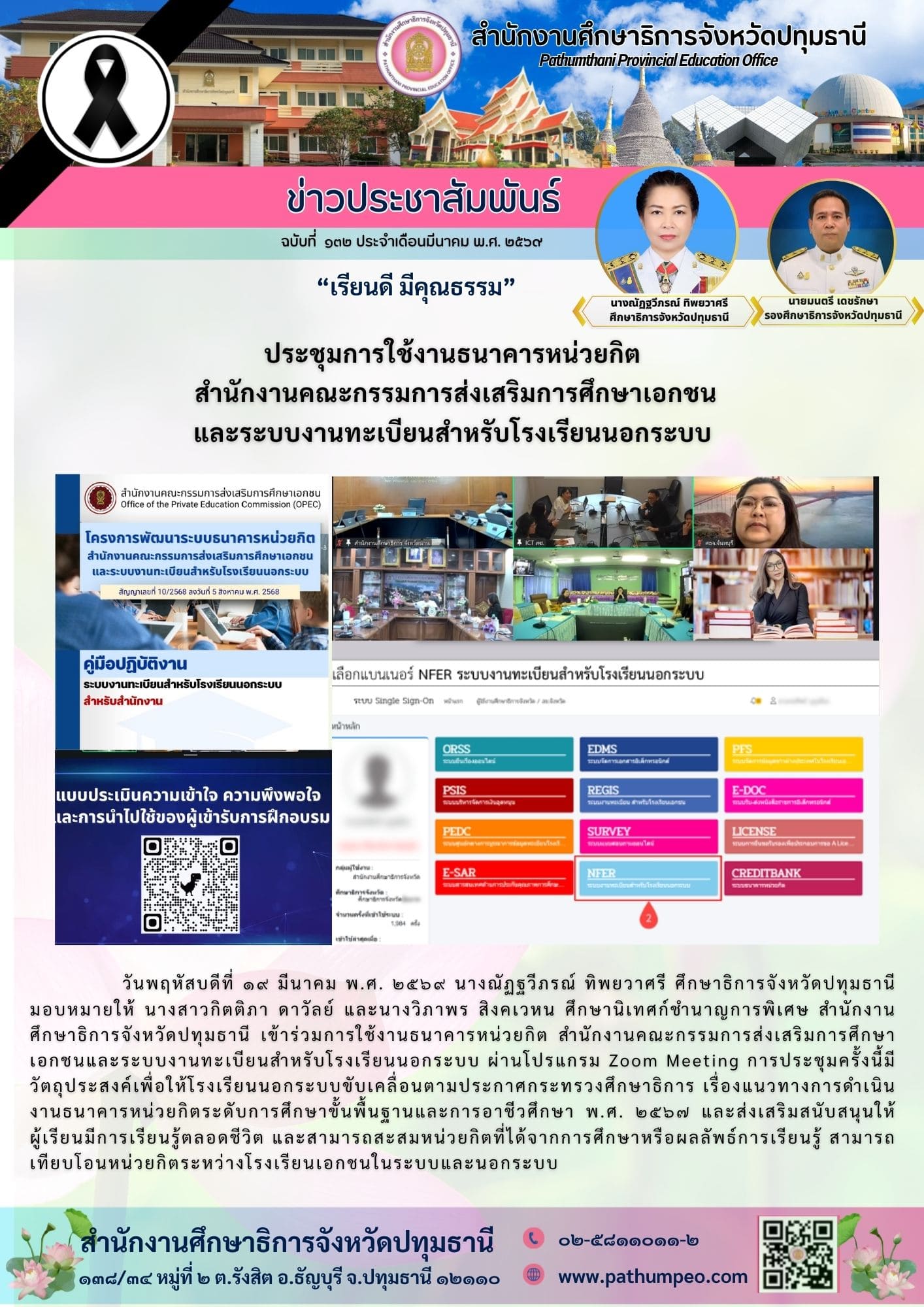 ประชุมการใช้งานธนาคารหน่วยกิต สำนักงานคณะกรรมการส่งเสริมการศึกษาเอกชน และระบบงานทะเบียน สำหรับโรงเรียนเอกชนนอกระบบ