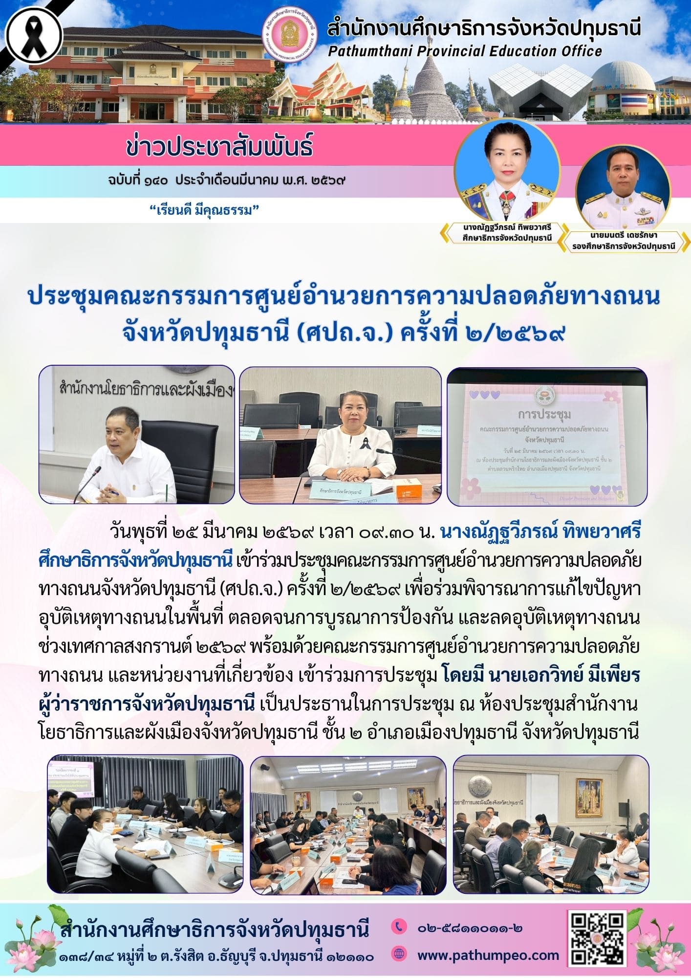 ประชุมคณะกรรมการศูนย์อำนวยการความปลอดภัยทางถนน จังหวัดปทุมธานี (ศปถ.จ.) ครั้งที่ ๒/๒๕๖๙