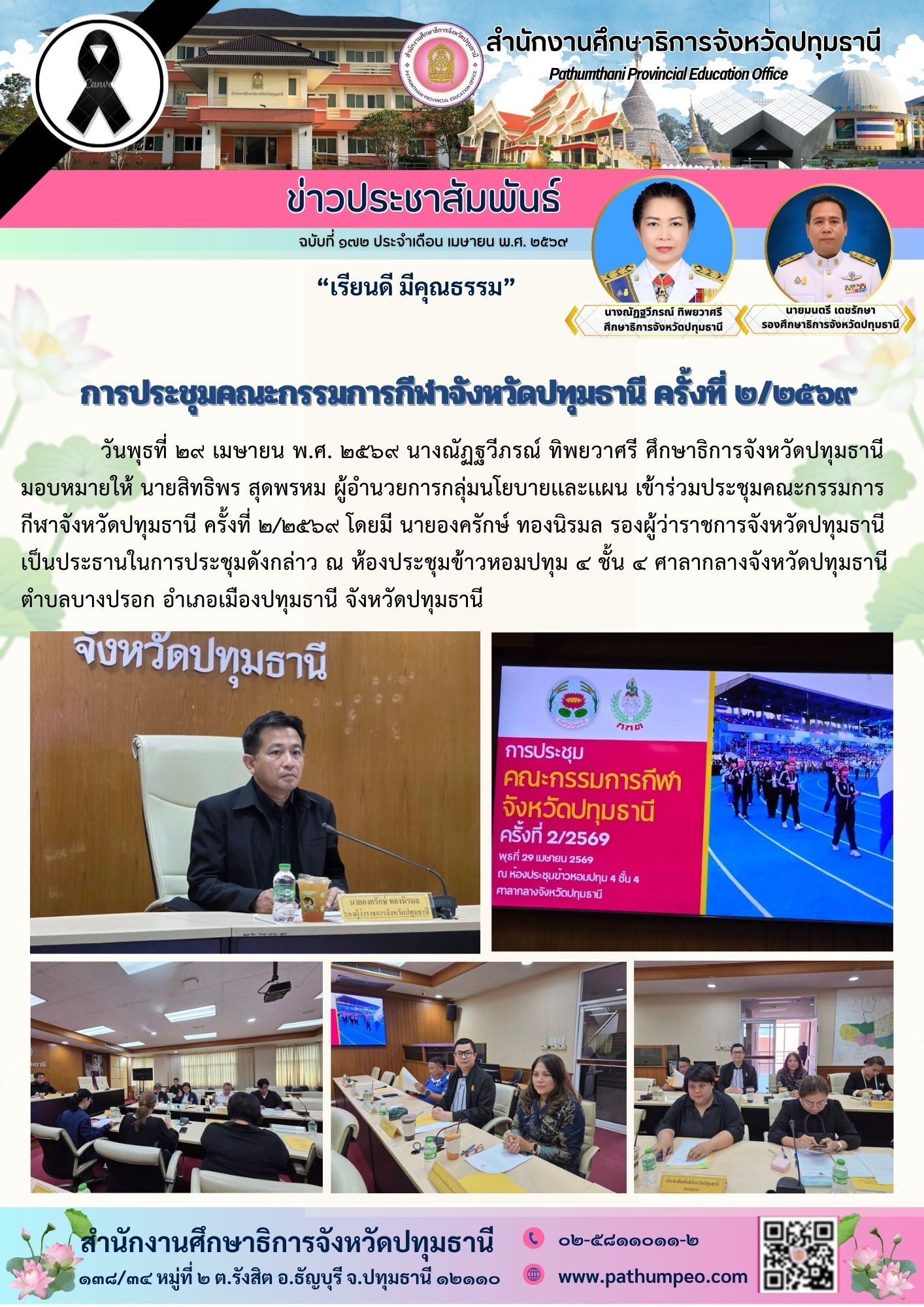 ประชุมคณะกรรมการศึกษาธิการจังหวัดปทุมธานี ครั้งที่ ๒/๒๕๖๙