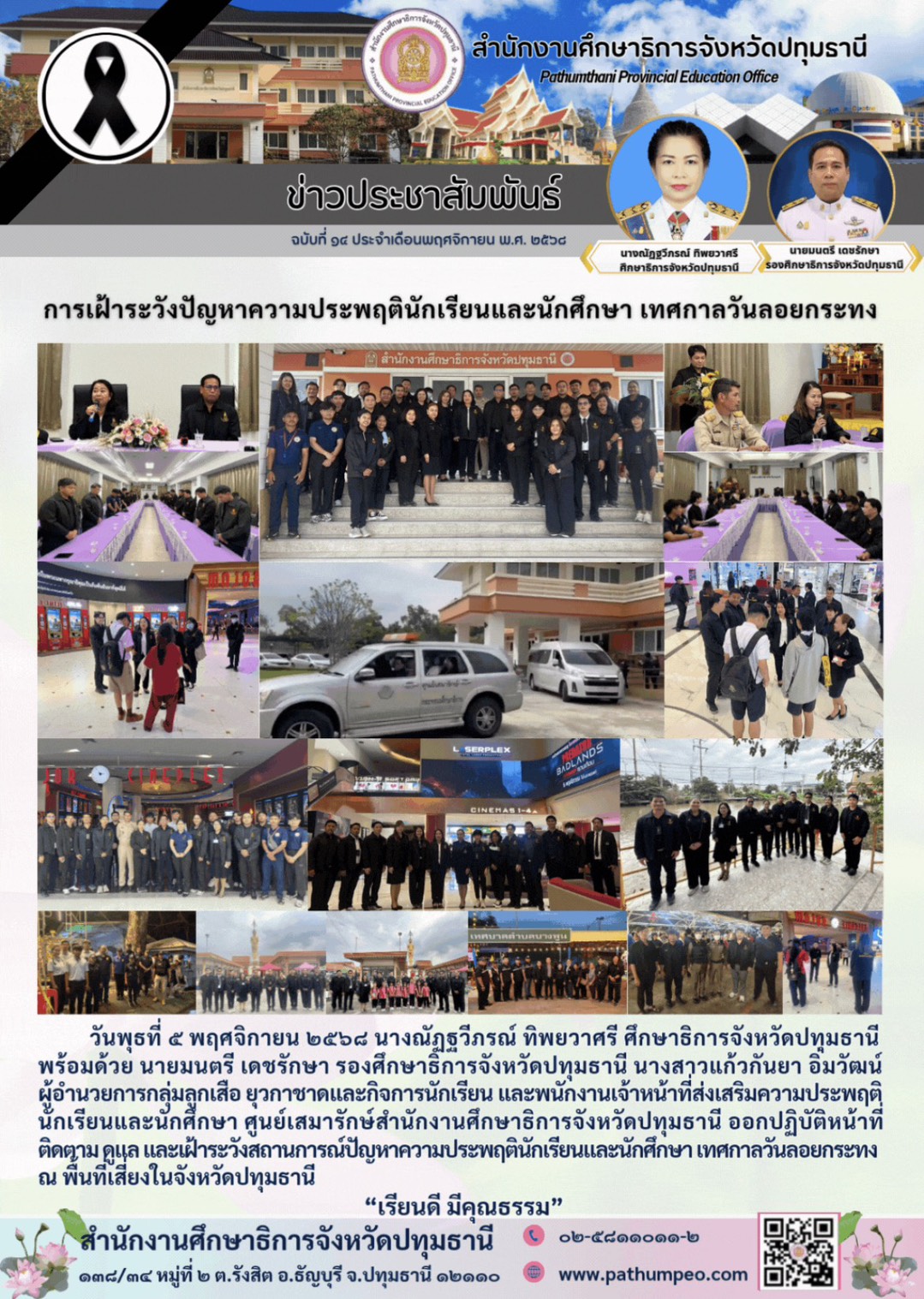 การเฝ้าระวังปัญหาความประพฤตินักเรียนและนักศึกษา เทศกาลวันลอยกระทง