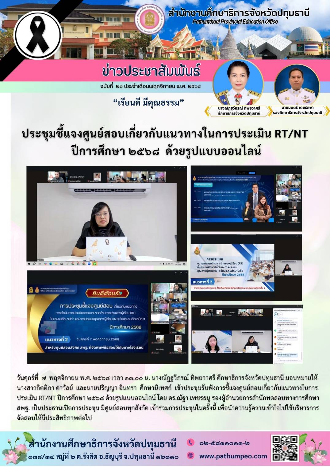 ประชุมชี้แจงศูนย์สอบเกี่ยวกับแนวทางในการประเมิน RT/NT ปีการศึกษา 2568 ด้วยรูปแบบออนไลน์